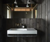 Til køkkenet i det store, åbne leverum og til husets badeværelser, der er holdt i rolige brun- og gråtoner, valgte arkitekten SP-greb, der er let genkendeligt ved sit enkle formsprog. Hvorfor? “Det har jeg lært hjemmefra,” forklarer Schülein, der er selv er vokset op med det tidløse armaturdesign og siden har brugt det i en del af sine projekter. Materialet er altid ubehandlet messing, som patinerer nænsomt over tid. “De er praktiske. Du skal faktisk ikke tænke på at pleje dem. De bliver bare pænere ved brug”, lyder der fra arkitekten.